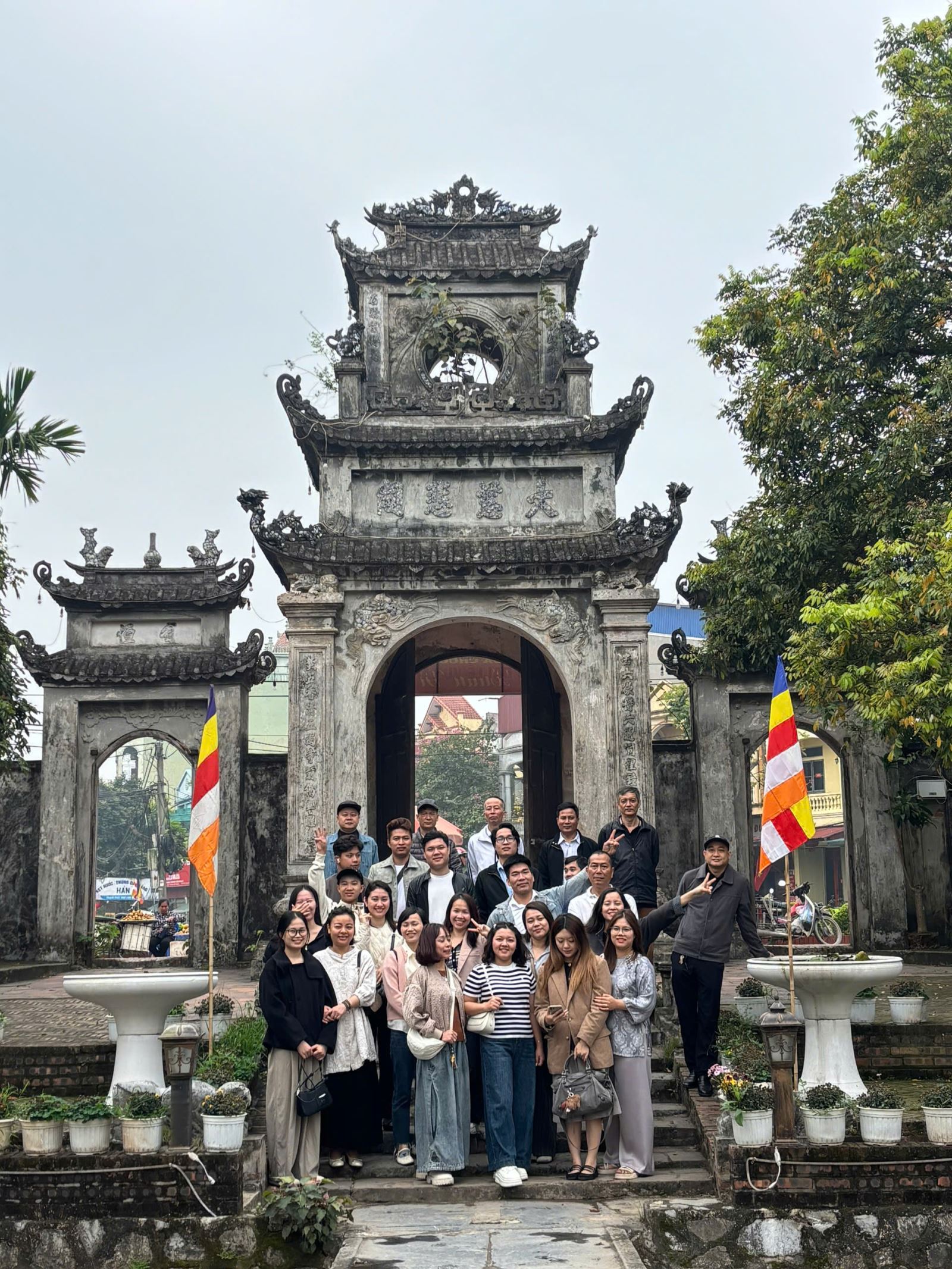 Sau đó, đoàn tiếp tục ghé thăm Chùa Chuông, ngôi chùa cổ kính được mệnh danh là “Phố Hiến đệ nhất danh lam”. Không gian thanh tịnh, kiến trúc truyền thống cùng những hàng cây cổ thụ tạo nên một khung cảnh trang nghiêm và yên bình, giúp mọi người tạm gác lại nhịp sống bận rộn để tận hưởng sự an nhiên của những ngày đầu năm.